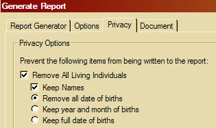 Have you checked the Privacy Filter on the Generate Report panel? You may have all living individuals removed.