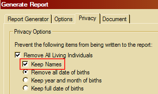 will have their names reported as <Unknown> unless the 'Keep Names' box is ticked.