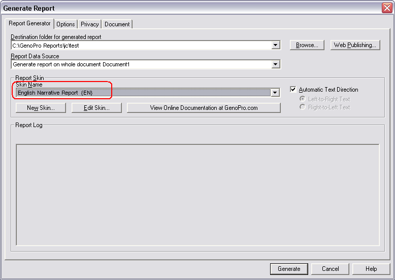 appleshaw (12/15/2006) I think that this is one of the side effects of taking part in a Beta programme.At some point, I had to drop some obsolete tags. I waited until the latest version. The report generator was introduced in Beta 13 and I had no experience in such technology. I had to learn by trial-and-error. So with 2.0 almost ready to go, hopefully this particular problem is a thing of the past and extra warnings should not be needed GenoPro 2.0 could have supported those tags, however the problem would have been deeper down the road when upgrading to version 3.0. It is better to know which tags won't be support in the future than further customizing your skin. People who have truly customized their skin can fix those errors in a few minutes. Future versions of GenoPro won't have those errors, as they will honor tags from their previous versions. The problem is there has been 20 major betas, and some tags are no longer in use.