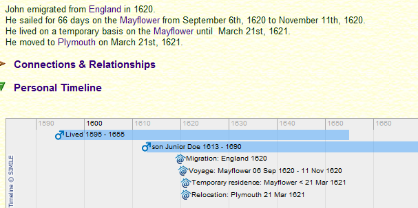 Note only Occupany data from Social Entities are shown on the GenoMap Timeline. This is to avoid overloading it with too many events. Examine the attached .gno to see how the NarrativeStyle custom tag is used to achieve the above.
