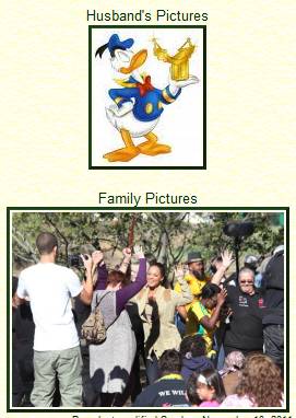 Where are the picture headings like "Husband's Pictures" and "Family Pictures" defined in the dictionary?