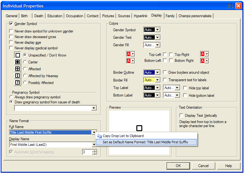 Also, you can right-click and select the menu item Set as Default Name Format, so the individuals you will add will inherit this name format.