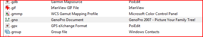 How can I persuade Vista to associate all my genopro files with my genopro program so that, instead of opening genopro every time, I can simply double click on a file and it will open as it used to on my trusty ole Windows 2000ME? I have tried the obvious - going to the Vista wizard and clicking on the gno file extension and clicking change program and when Genopro is not on the list, browsing and then choosing it and............... nothing happens - it does not appear on the list of "recommended" or "other" programmes - just the usual MS Word, Nero, WMP etc. Not a big problem but it annoys me that the most important files on my computer seem to be regarded as second class citizens by my computer. I resent that! Who's the boss here?!